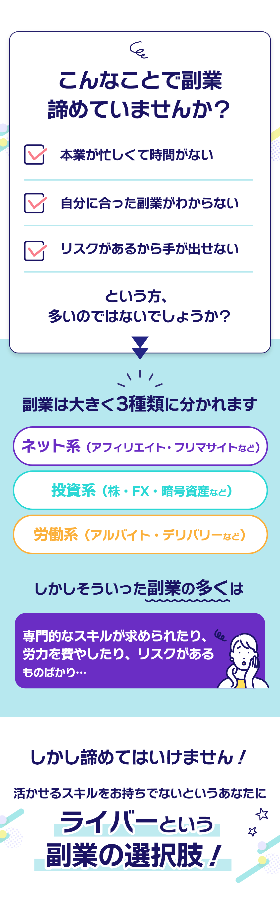 多くのライバーは自分プロデュースができないことで引退してしまいます